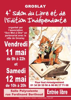 · Le vendredi 11 et samedi 12 mai 2007, Les Editions Pollagoras seront présentes au 4ème salon du livre et de l’Edition Indépendante de Groslay dans le Val d’Oise. Vous pourrez venir découvrir nos deux nouveaux titres destinés à la jeunesse : Je m’appelle Marie & Je m’appelle Mathieu. · Vous trouverez plus de détails sur le site de l’association organisatrice, Son Mot à dire : http://www.asso-smad.com/