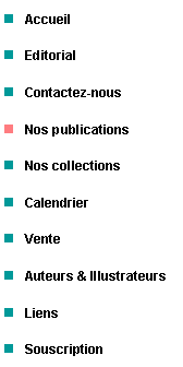 Accueil | Editorial | Contactez-nous | Nos publications | Nos collections | Calendrier | Vente | Auteurs & Illustrateurs | Liens